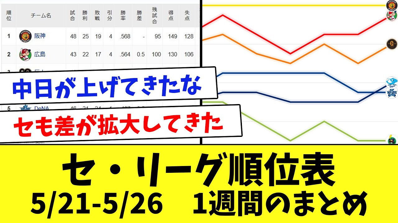 【最新】今週のセ・リーグ順位表!5月21日~5月26日のまとめ