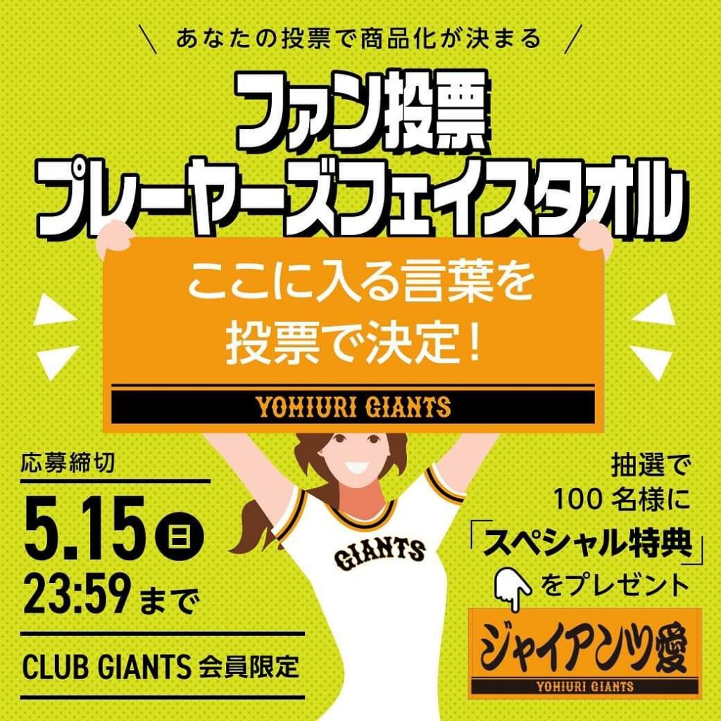 #不屈 #CLUB_GIANTS 会員を対象とした「#ファン投票プレーヤーズフェイスタオル」企画を、本日10日正午から15日午後11時59分まで応募フォームで開催します #巨人 #giants #ジャイアンツ #読売ジャイアンツ #野球 #プロ野球 #東京 #tokyo CLUB_GIANTSgiantsNPB Central LeagueOfficial MediatokyoYomiuri GiantsYomiuri Giants Official Mediaジャイアンツファン投票プレーヤーズフェイスタオル」企画を、本日10日正午から15日午後11時59分まで応募フォームで開催します🔥プロ野球不屈巨人東京読売ジャイアンツ野球 NPBHUB.COM | The Fanbase of Nippon Baseball & Nippon Professional Baseball