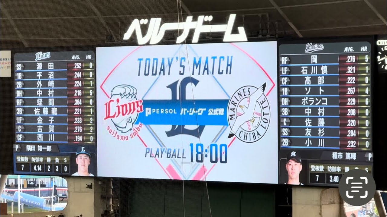 パ・リーグ公式戦 埼玉西武 vs 千葉ロッテ 8回戦