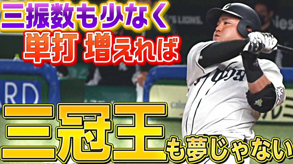 まだまだシーズン序盤ながら「パ・リーグで18年ぶりの三冠王誕生」という夢を抱かずにはいられないほど、ここまで素晴らしい打撃を見せている埼玉西武・山川穂高。HR、打率、打点の中でも、特に壁が高いと思われるのが『打率』であるが…いまの三振数の少なさをキープしながら動画内でお見せしているような”単打”を増やすことがカギになるかもしれない。