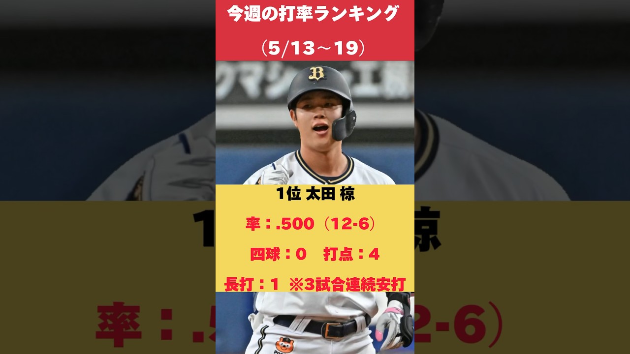【救世主現る】今週の打率ランキング(5/13〜19)【オリックスバファローズ】 ORIX Buffaloesオリックス・バファローズ山足達也 NPBHUB.COM | The Fanbase of Nippon Baseball & Nippon Professional Baseball