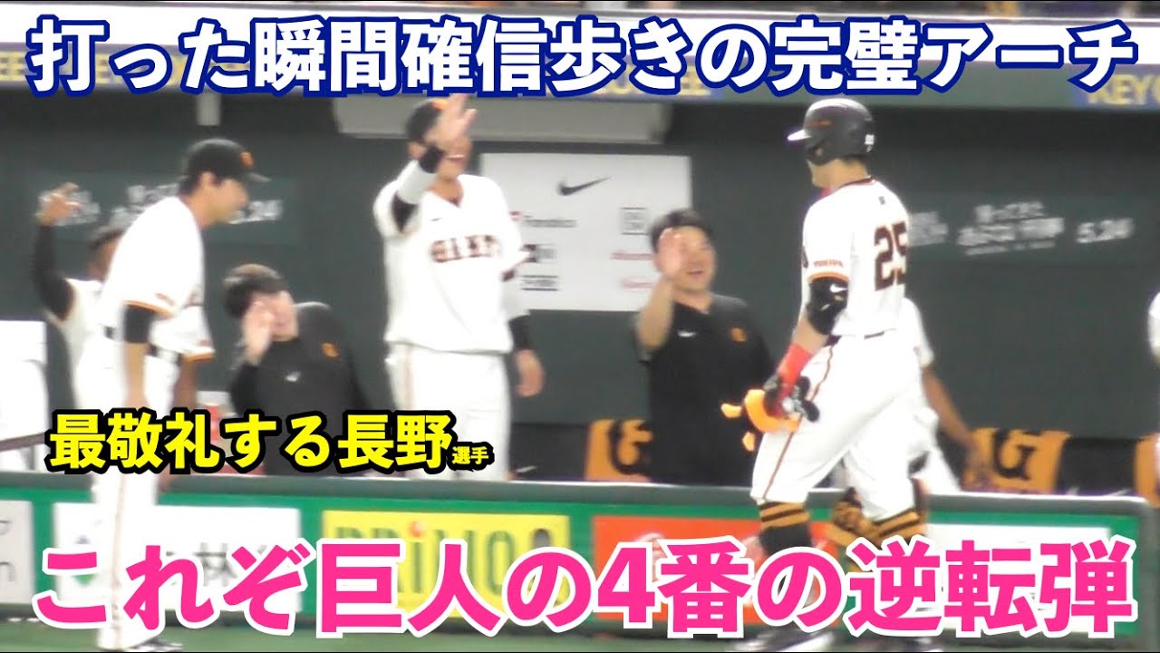 巨人岡本選手の逆転アーチに大興奮で転んでしまう長野選手!