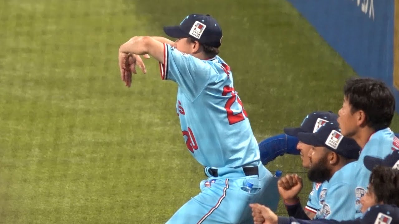 ベンチでちょっとクセの強い動きをする木澤尚文 東京ヤクルトスワローズ 武岡龍世の打席 2024/05/30 交流戦