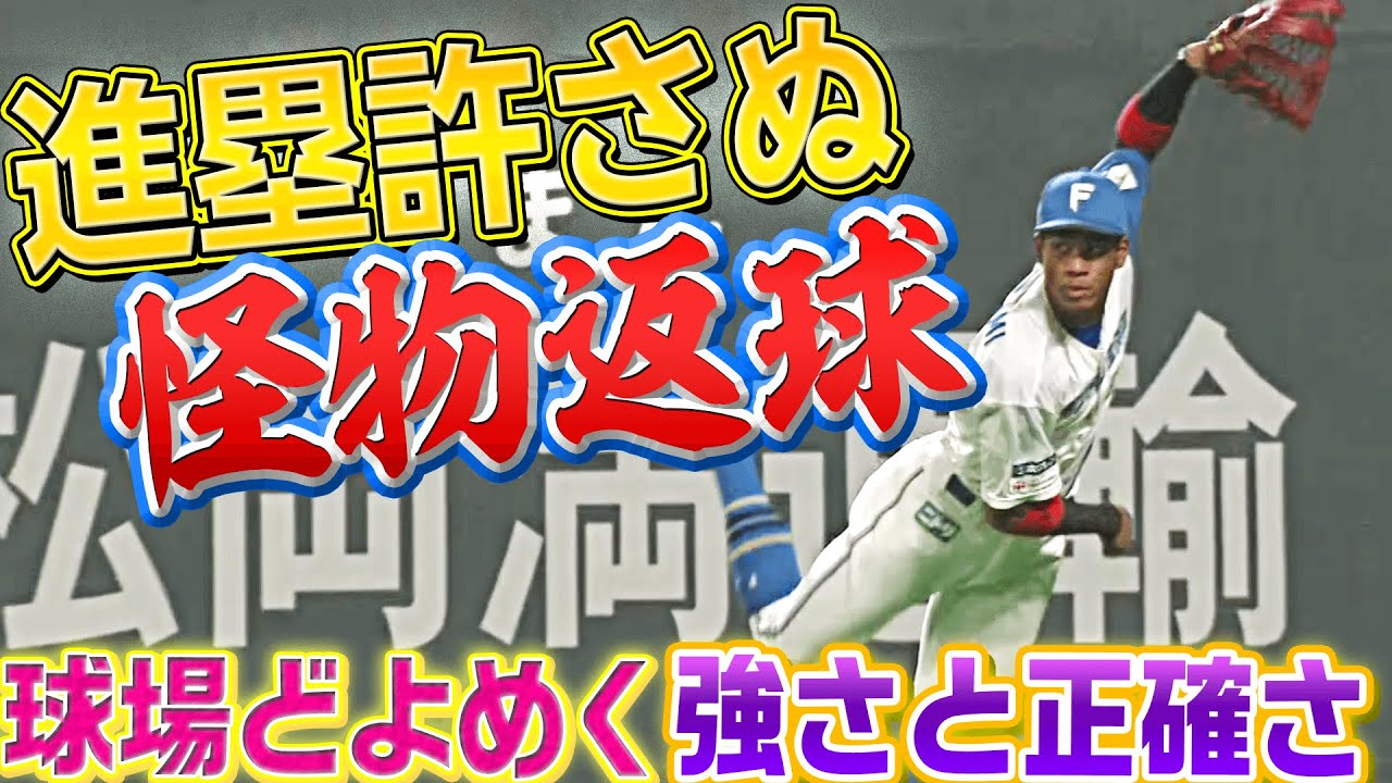 ライト深い位置へのフライ、通常なら二塁打者は三塁を目指したい場面だが…北海道日本ハム・万波中正の爆肩がそれを阻止する!! 球場どよめく怪物級の“超返球”にご注目。