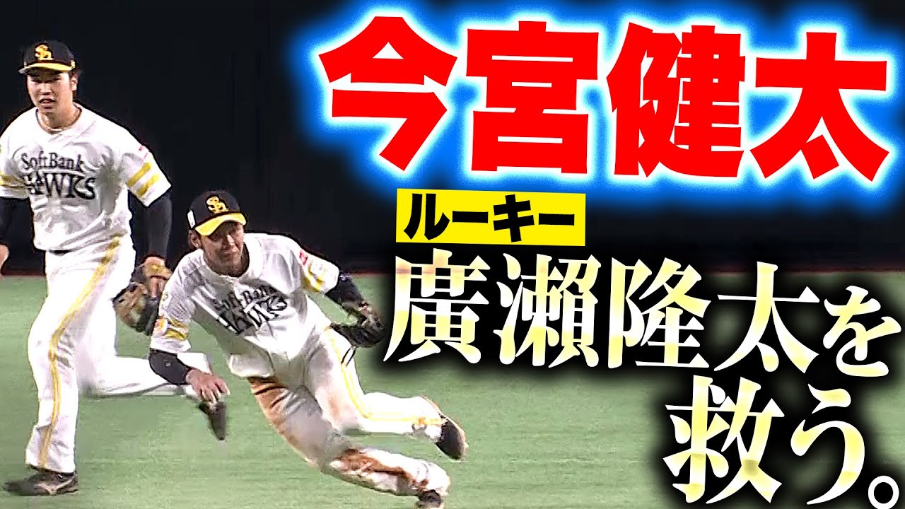 痛烈な打球がセカンドを襲い方向が変わるも、その打球を拾い上げたショート・今宮健太が神フォローでアウトに!! そして廣瀬隆太は直後にダイビングキャッチで痛烈な打球をおさえる好守!! ホークスの二遊間が好守で魅せた!!