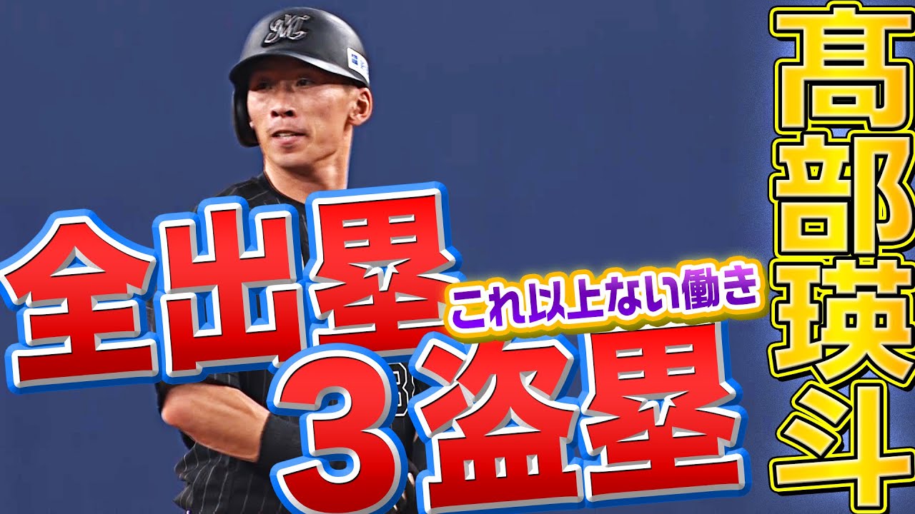 1番に座る千葉ロッテ・高部瑛斗がリードオフマンとしてこれ以上ない働き。2安打2四球の全打席出塁に加えて快足生かす3盗塁、本日の活躍をまとめてお届け!