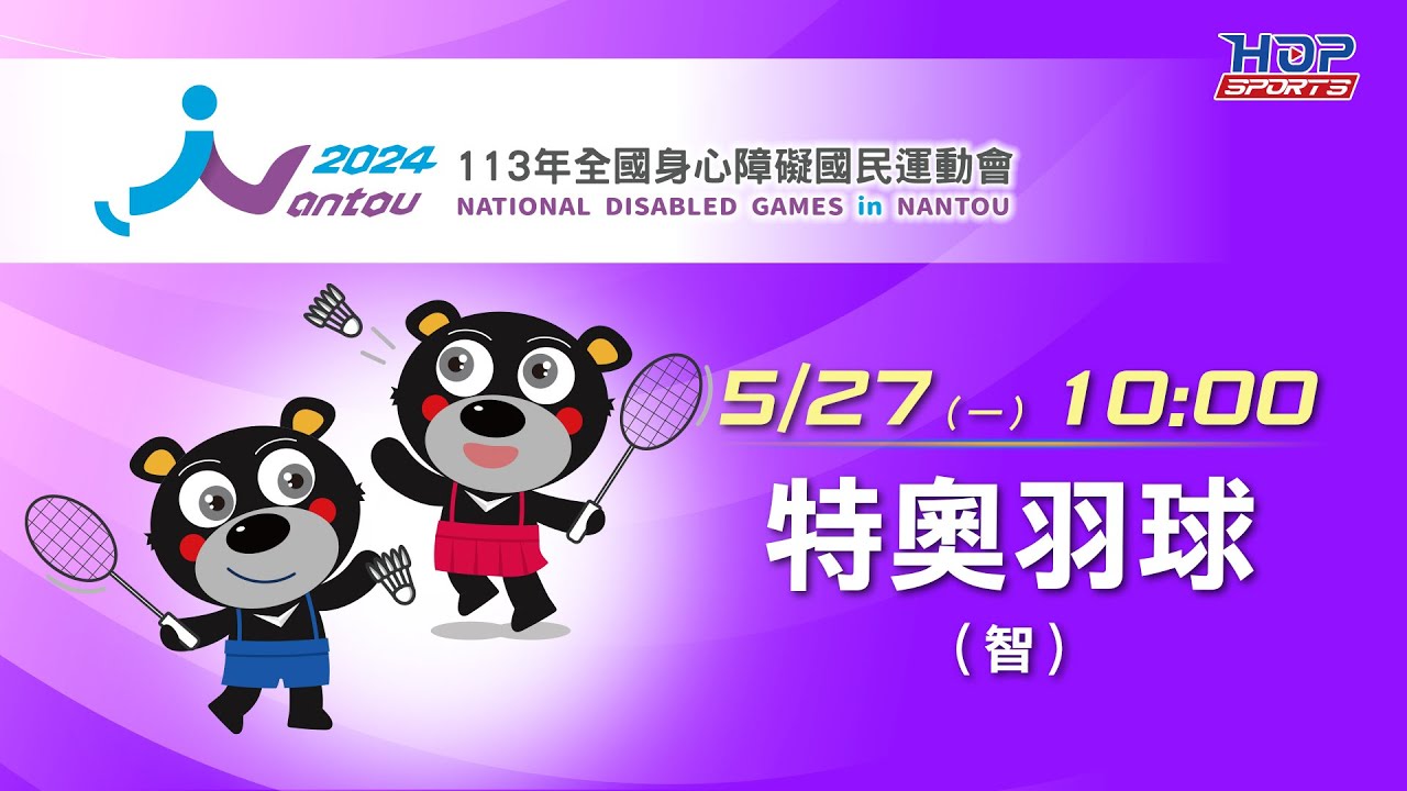 05/27(一) LIVE |113年全國身心障礙國民運動會|特奧羽球 (智能障礙)|單、雙打決賽
