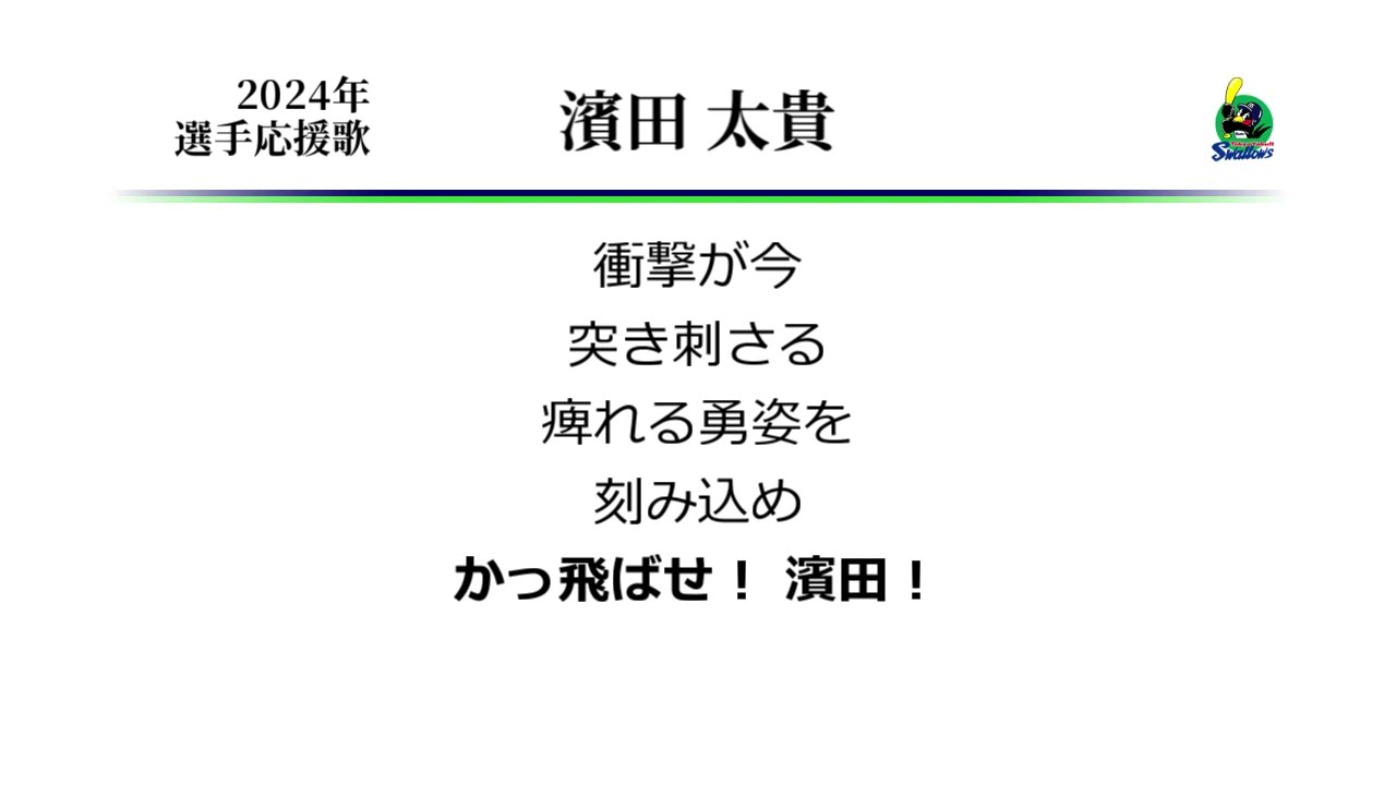 東京ヤクルトスワローズ 濱田太貴 応援歌 [MIDI] ヤクルト濱田選手の応援歌です。 個人的に、1小節目「衝撃が」の4音目”き”の音の高さ問題については、 直前3音目”げ”から1音だけ上げるのが一番エモくなると感じます。 Taiki Hamada (Baseball Player)Tokyo Yakult SwallowsTokyo Yakult Swallows (Baseball Team)なんぶふじ応援歌東京ヤクルトスワローズ濱田太貴 NPBHUB.COM | The Fanbase of Nippon Baseball & Nippon Professional Baseball