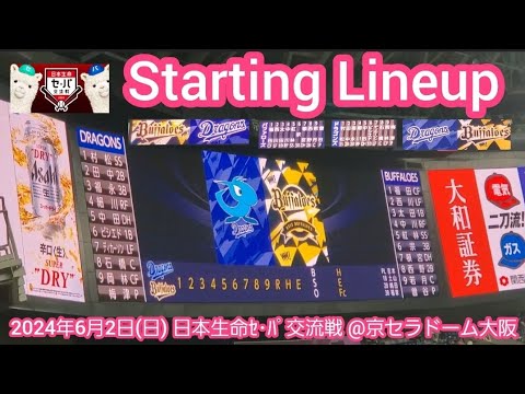 20240602【日本生命セ・パ交流戦!】両チームのスタメン発表・審判【オリックス・バファローズvs中日ドラゴンズ】試合前 中田翔スタメン復帰♪@京セラドーム大阪・レフト外野下段