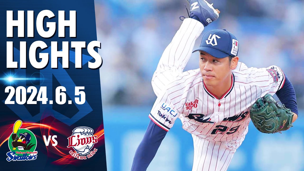 【スワローズ活躍シーン】小川泰弘投手が7回途中2失点の好投で今季2勝目!サンタナ選手が逆転タイムリーを放つ活躍!7対2で勝利!|6月5日 東京ヤクルトスワローズvs埼玉西武ライオンズ(神宮球場)
