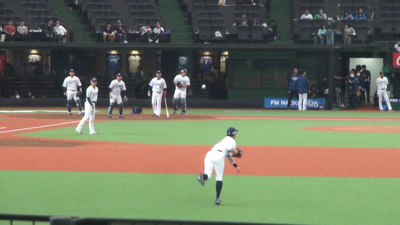 埼玉西武ライオンズが試合開始前に守備練習をしている映像。外野席ライトボールシートから撮影。2024年6月2日(日) ベルーナドーム 西武 vs 巨人。