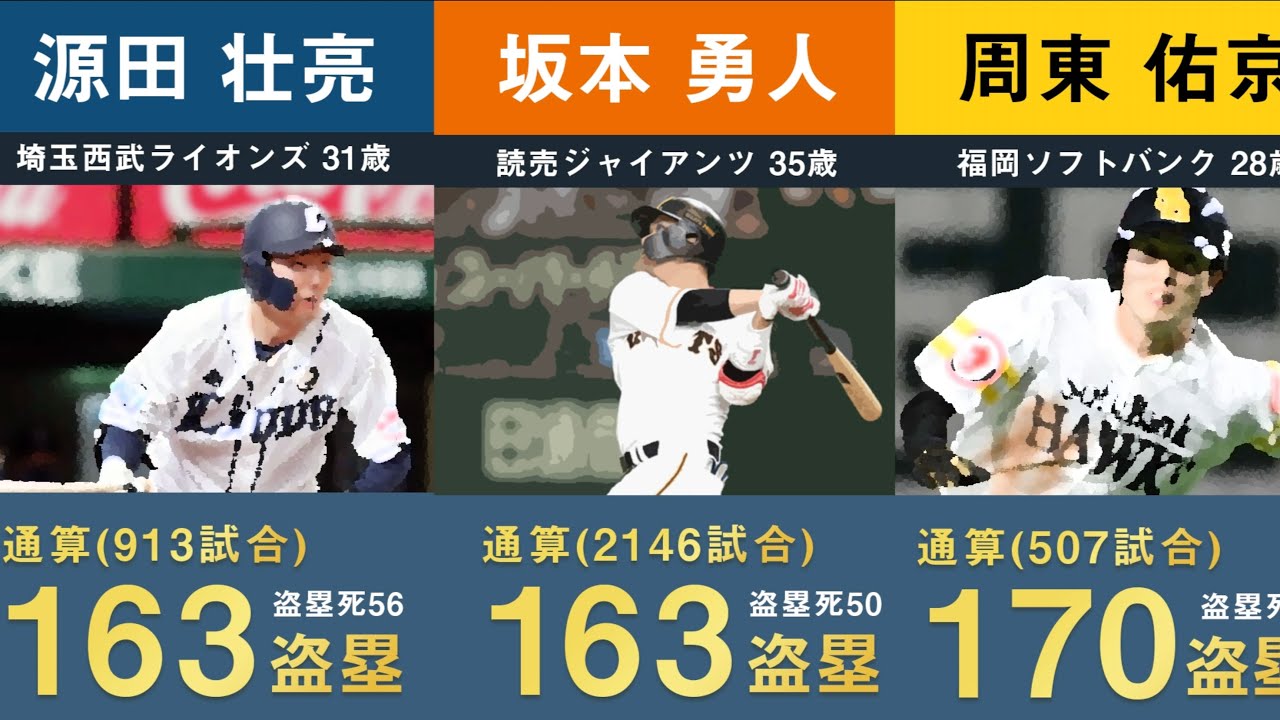 【2024年度最新】現役プロ野球通算盗塁数ランキング 【NPB 日本 スチール 周東右京 西川遥輝 大島洋平 山田哲人 荻野貴司】