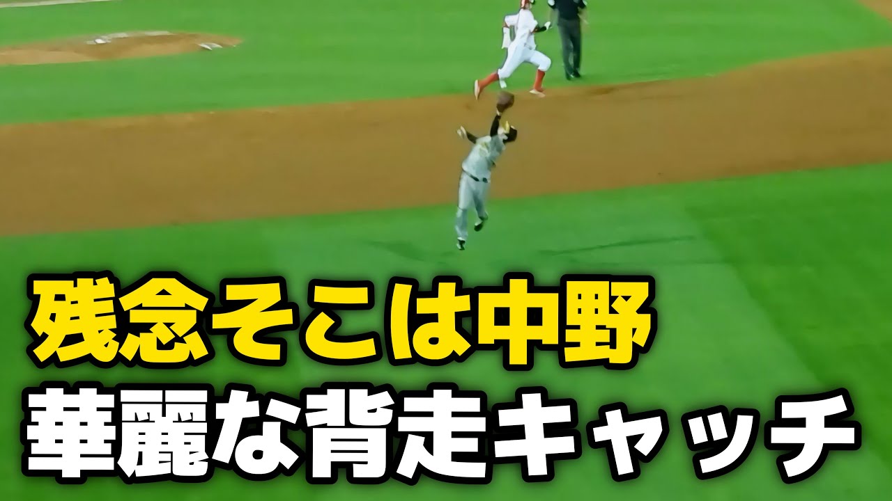 【超絶美技】中野拓夢、ライト前に落ちそうな打球に爆速背走ジャンピングキャッチ!スーパープレーにベンチも大盛り上がり! 2024.5.23