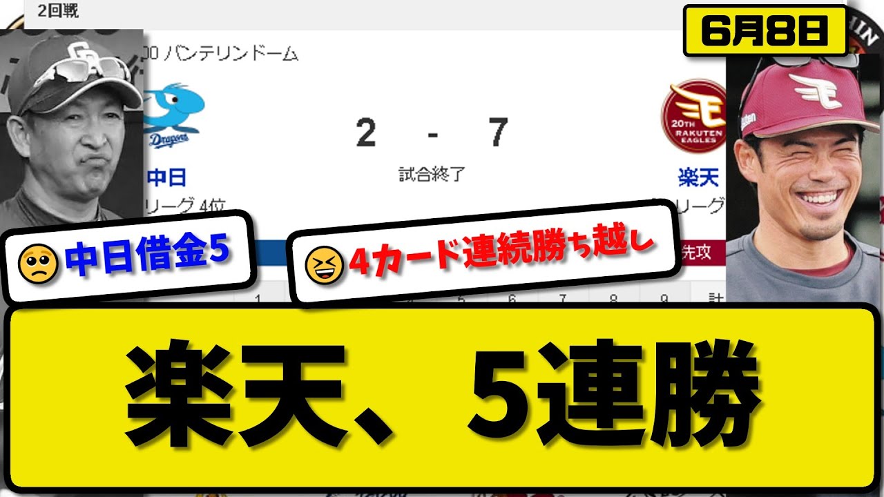 【パ4位vsセ4位】楽天イーグルスが中日ドラゴンズに7-2で勝利…6月8日 5連勝で交流戦首位キープ…先発古謝6回2失点初勝利…渡邊&太田&小郷&村林が活躍【最新・反応集・なんJ・2ch】プロ野球 #中日ドラゴンズ #東北楽天ゴールデンイーグルス #プロ野球 #反応集 Tohoku Rakuten Golden Eagles東北楽天ゴールデンイーグルス NPBHUB.COM | The Fanbase of Nippon Baseball & Nippon Professional Baseball