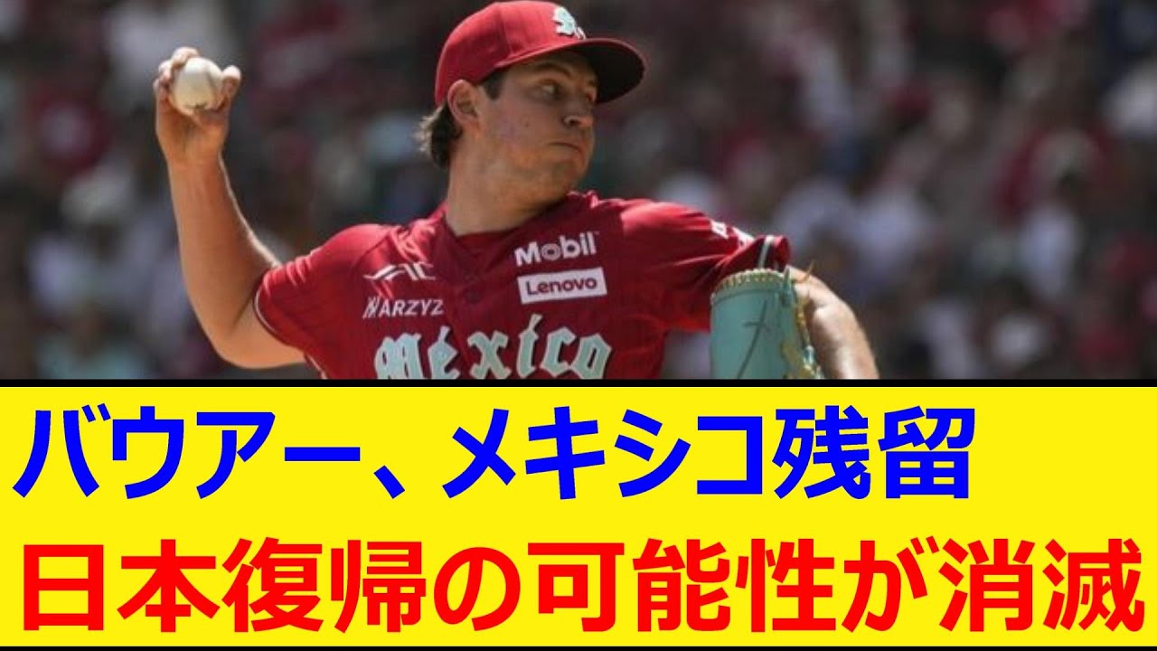 バウアー、メキシコ残留。日本復帰の可能性が消滅【プロ野球、なんJ、なんG反応】【2ch、5chまとめ】【横浜DeNAベイスターズ、DeNA、ベイスターズ、助っ人、MLB、メジャー、大リーグ、新外国人】【バウアー音声、バウアーボイス、バウアーの声】