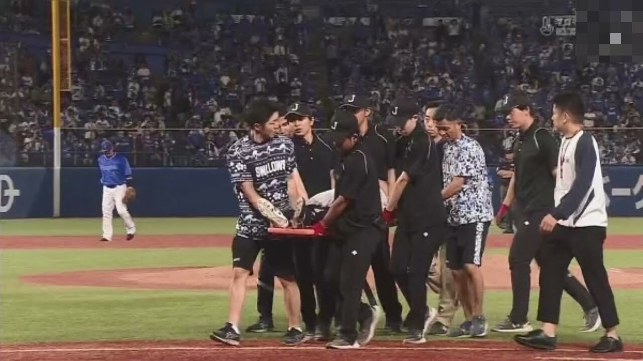 ヤクルト丸山フェンスに激突し、タンカで運ばれる。