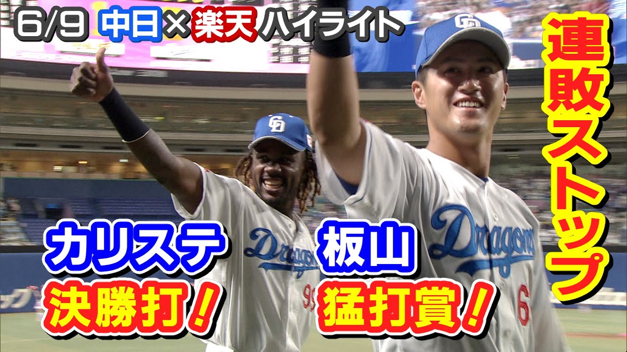 6/9 中日×楽天 ハイライト 2回表 松葉から阿部が先制ホームラン 4回ウラ 1・3塁 村松が犠牲フライ 4回ウラ カリステ、勝ち越しタイムリー 5回ウラ 板山、この日3本目のヒット 5回ウラ 1・3塁 宇佐見はタイムリー 9回表 マルティネス三振奪ってゲームセット #プロ野球Chunichi Dragonsセ・パ交流戦ドラゴンズハイライト中日中日ドラゴンズ楽天 NPBHUB.COM | The Fanbase of Nippon Baseball & Nippon Professional Baseball