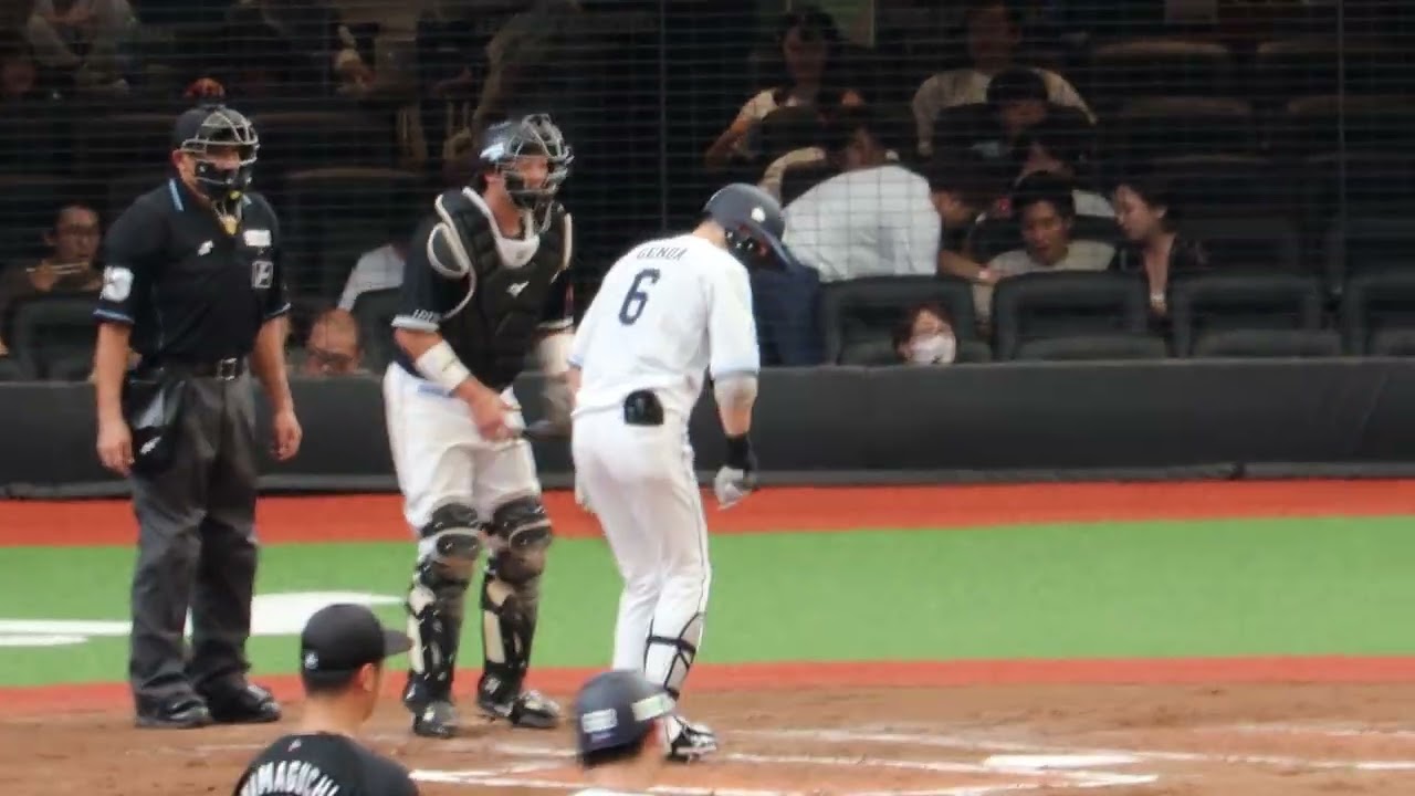【D-LITE登場曲にて源田壮亮登場。球児の皆様これが送りバントでございます〜✨】