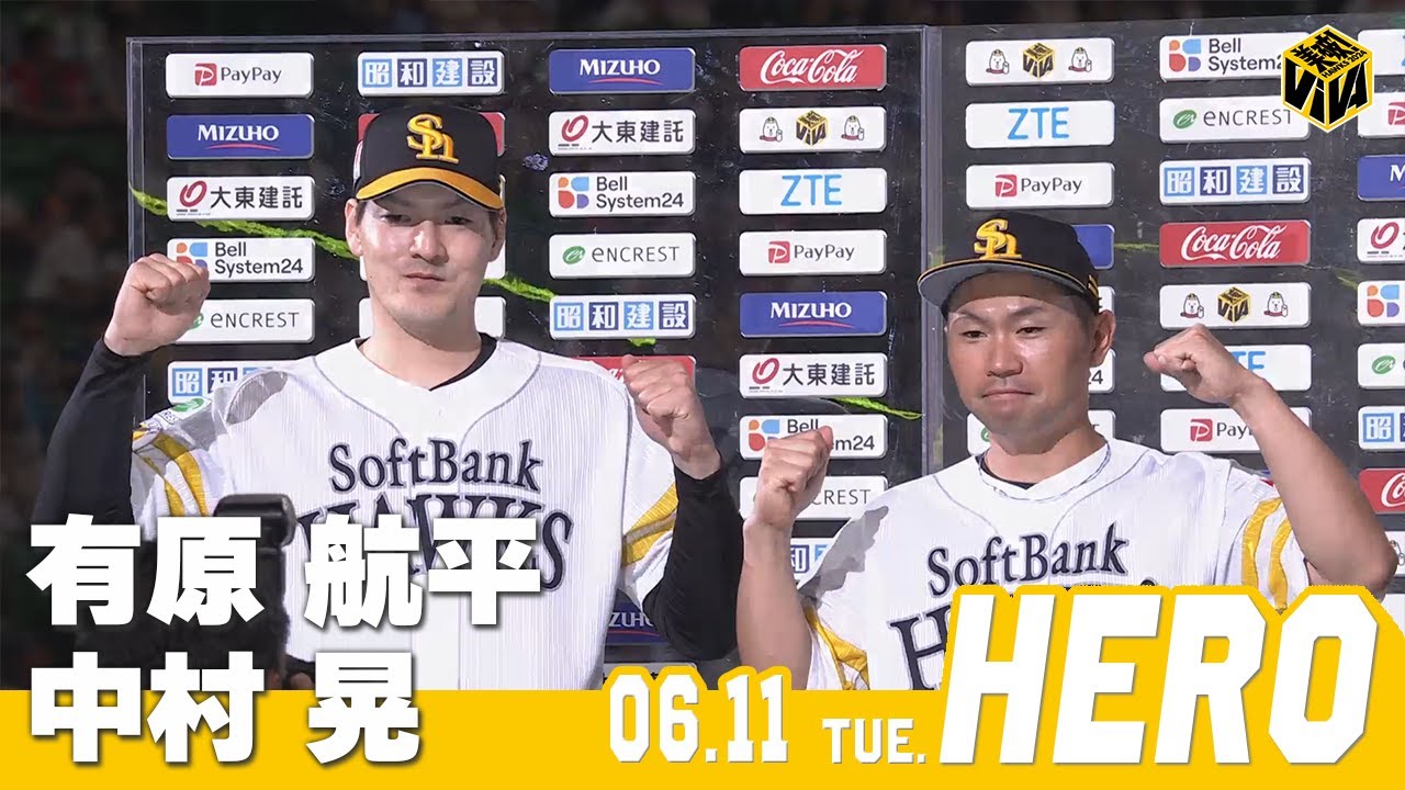 6月11日(火)vs東京ヤクルト #有原航平 投手 #中村晃 選手 のヒーローインタビューです。