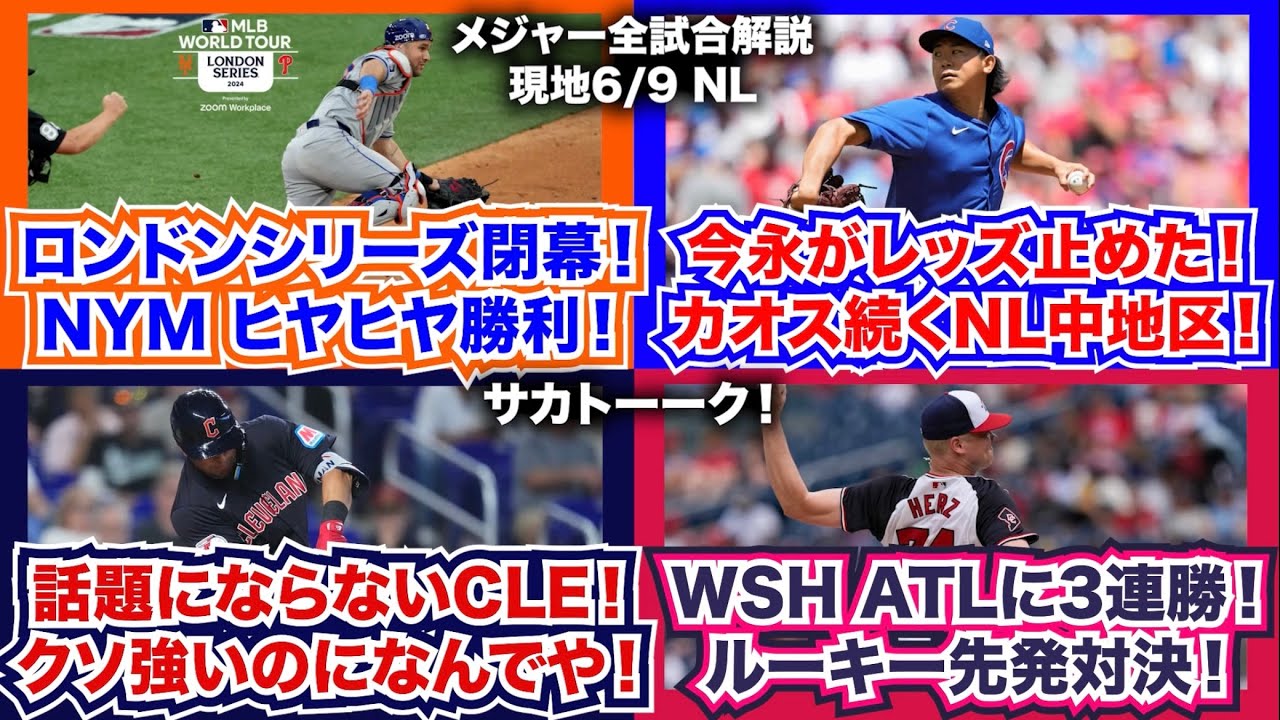 【NL6/9】ロンドンシリーズ閉幕!メッツヒヤヒヤ勝利!今永がレッズを止めた!カオス続くNL中地区!話題にならないCLE!クソ強いのになんでや!ナッツがブレーブスに3連勝!ルーキー先発対決!