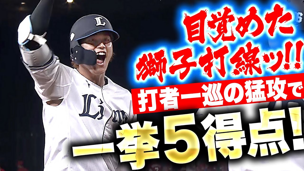 やはり昨日のラストシーンで何かが変わった。5回裏、滝澤夏央の安打を皮切りに、元山飛優のタイムリー、長谷川信哉、西川愛也、中村剛也、陽川尚将と続いてタイムリー4本で一挙5得点!! 獅子は強い気持ちで一丸となって戦う!!