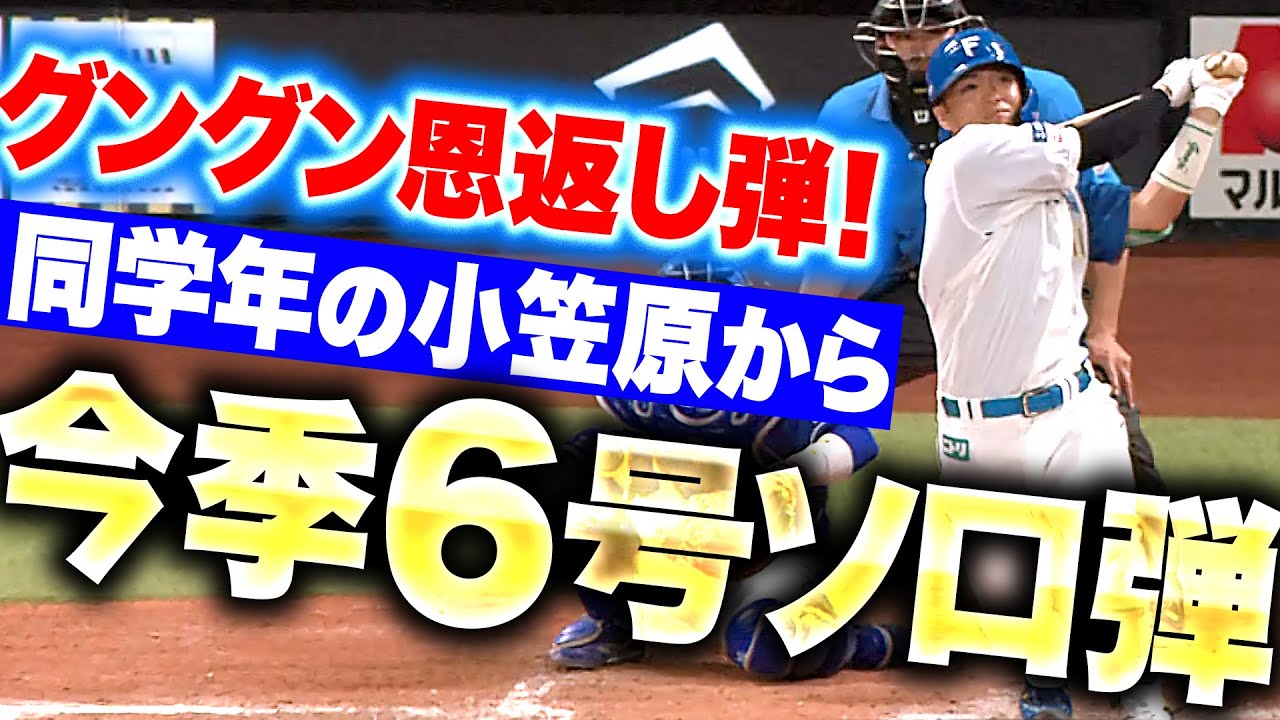 7回裏、北海道日本ハム・郡司裕也と中日・小笠原慎之介の同学年対決が実現。高め、147キロのストレートを引っ張ると、打球はグングン伸びてレフトスタンドへ!! 今季6号となる一発を叩き込み、同学年対決を制した!!