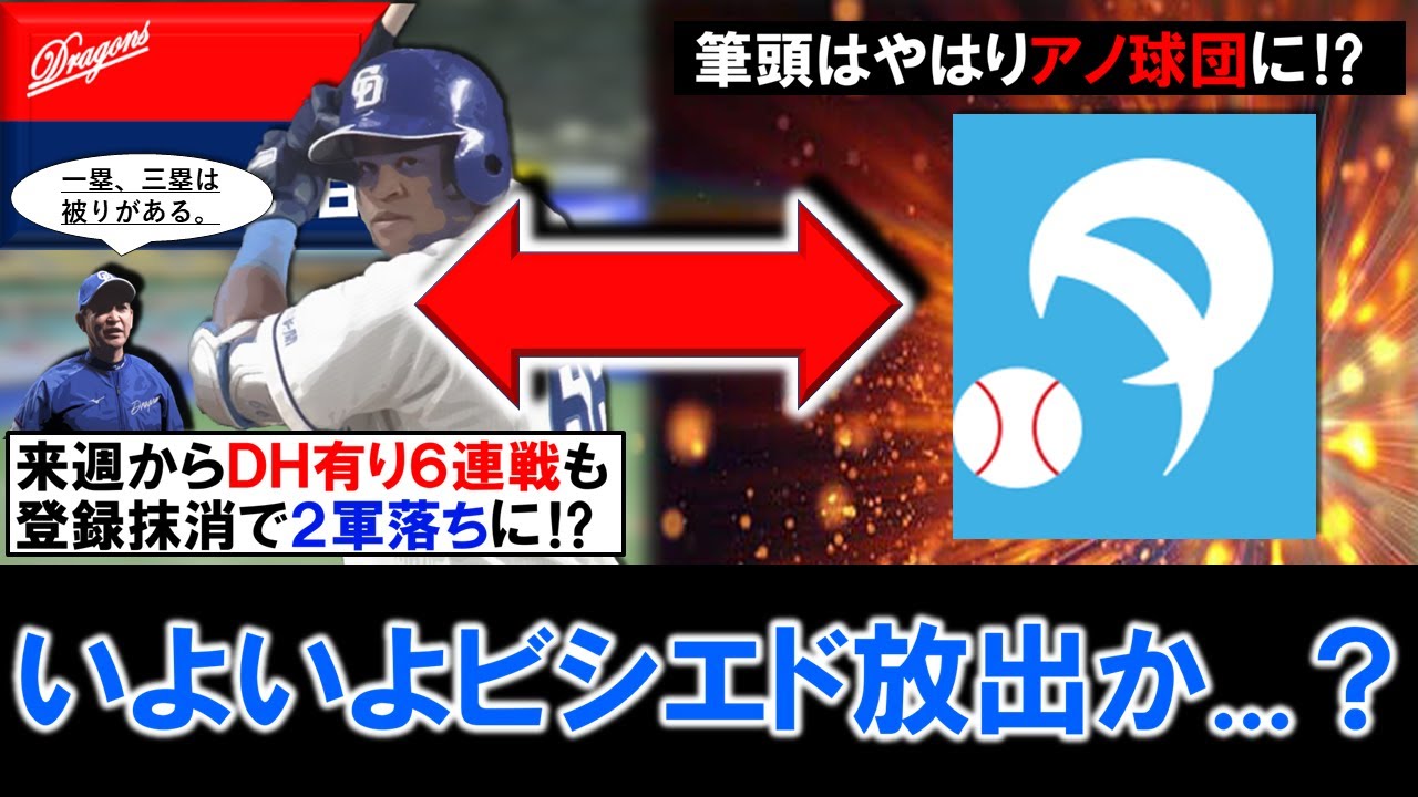【候補はやはりアノ球団…?】中日『ビシエド』が来週からDH有り6連戦のタイミングでまさかの2軍落ちに… いよいよ囁かれていた通り交流戦後パリーグ球団にトレードになるのか!?