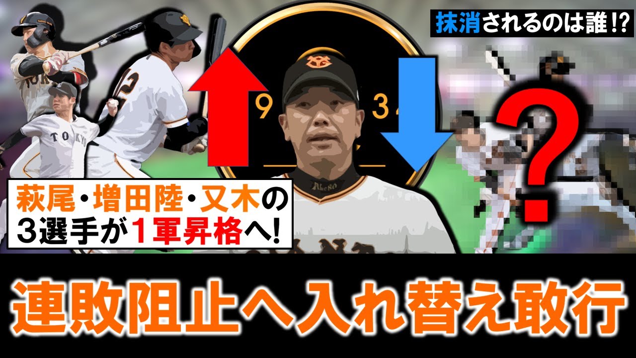 【連敗ストップへ入れ替え敢行!】巨人2軍で絶好調の『萩尾匡也』&『増田陸』と投手では『又木鉄平』の3選手が1軍昇格へ!一方代わりの抹消選手は誰になる!?