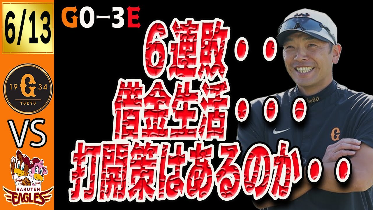 楽天に完封負けで巨人は6連敗!借金生活突入!どうすればいいのか?打開策はあるのか?! 読売ジャイアンツ
