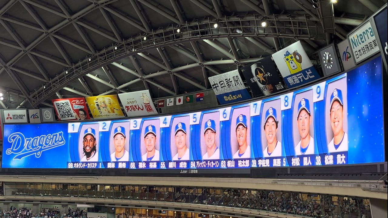 プロ野球セ・パ交流戦2024 中日ドラゴンズVS東北楽天ゴールデンイーグルス in バンテリンドームナゴヤ 第3回戦 スタメン発表の様子を記念に撮ってきましたので、是非見て下さいね。先発は中日・松葉貴大 東北楽天・岸孝之でした。