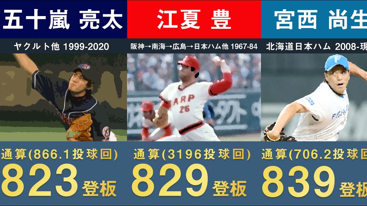 【前人未到の1002試合登板】プロ野球歴代通算 投手登板数ランキング【2024年最新 投手 トップ50 岩瀬仁紀 平野佳寿 宮西尚生 益田直也 山田久志 若生智男】