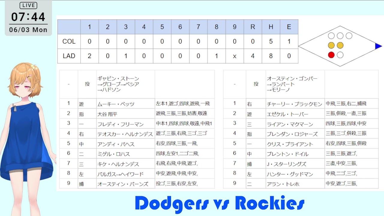 【大谷翔平】Live応援-ドジャースvsロッキーズ(6/3)