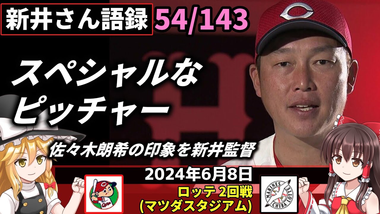 「スペシャルなピッチャー」【新井監督語録:2024年6月8日】若ゴイ内野陣 守乱。羽月適時失策 佐々木対策が不発。玉村 好投報われず 5回2失点で負け投手。小園2安打 失策は反省。