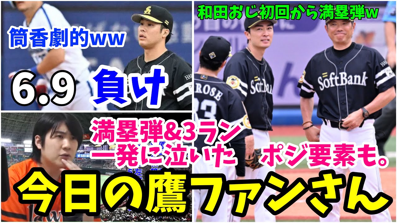 【今日の鷹ファンさん】8失点で打ち負けたホークス、最悪な日曜日になると思いきや…嶺井好調、ドラ6大山凌が初登板無失点、ポジれた試合 2024年6月9日 福岡ソフトバンク対横浜DeNA 試合ハイライト
