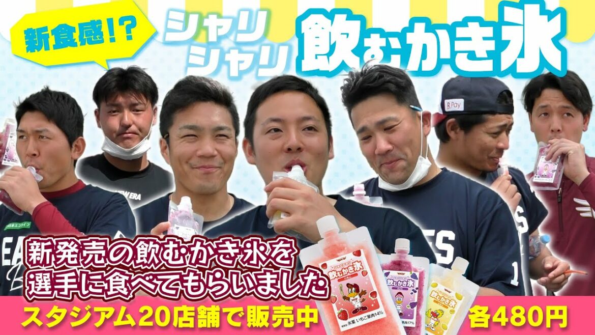 飲むかき氷をスプリングキャンプ中の選手たちに飲んでもらいました。