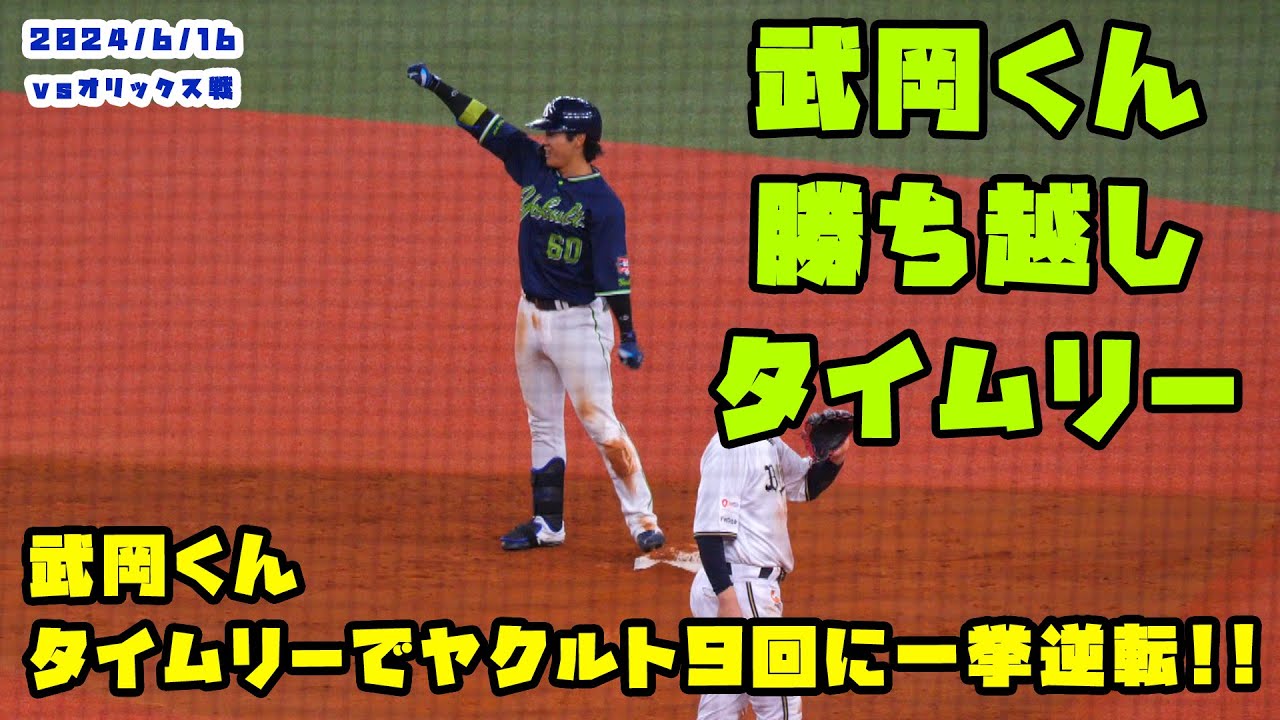 武岡くんの勝ち越しタイムリーでヤクルト9回に一挙逆転する!! 2024/6/16 vsオリックス
