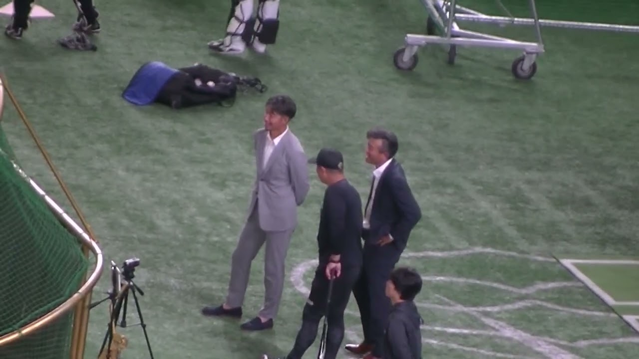 村田修一コーチと話すイケオジ鳥谷敬 氏と挨拶にきた前田幸長 氏【読売ジャイアンツ対千葉ロッテマリーンズ2024年6月4日】 試合前のロッテ練習風景 Chiba Lotte Marines千葉ロッテマリーンズ鳥谷敬 NPBHUB.COM | The Fanbase of Nippon Baseball & Nippon Professional Baseball
