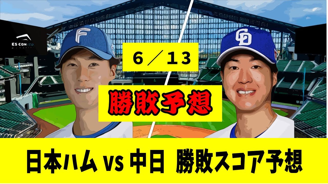 6/13(木)日本ハム 対 中日 【勝敗スコア予想】18:00 エスコンF【セパ交流戦】【野球反応集】