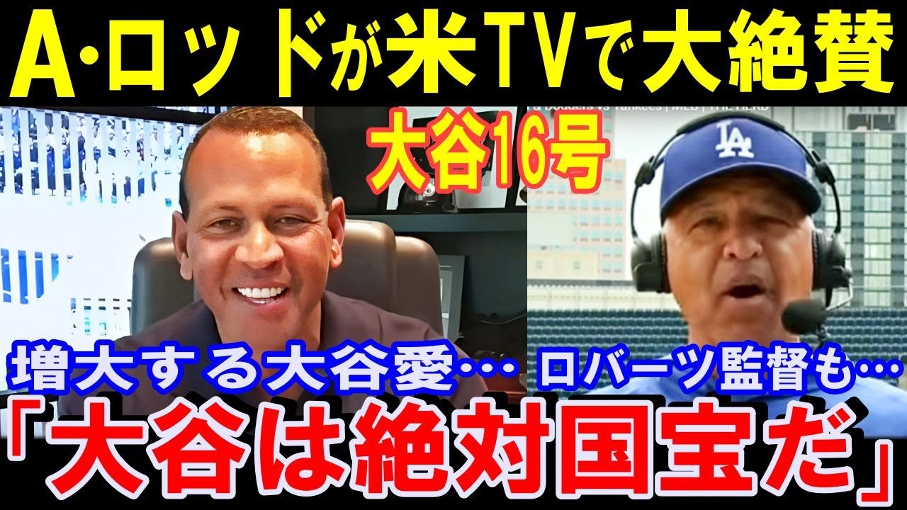 米TVでAロッドとロバーツ監督が大谷翔平を大絶賛!「彼は間違いなく国宝だ。」「もう一度言う彼は人間じゃない!現代のバンビーノ」!大谷16号2ランホームラン【海外の反応】感動!MLB