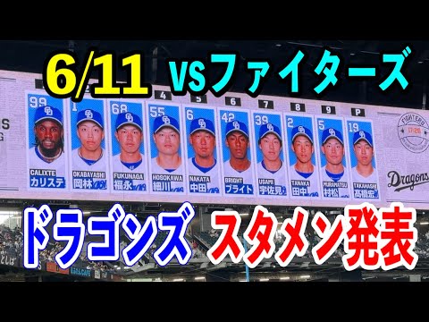 【スタメン発表】ファイターズvsドラゴンズ!ドラゴンズスタメン発表!!ブライト選手が即スタメン!!2024/06/11