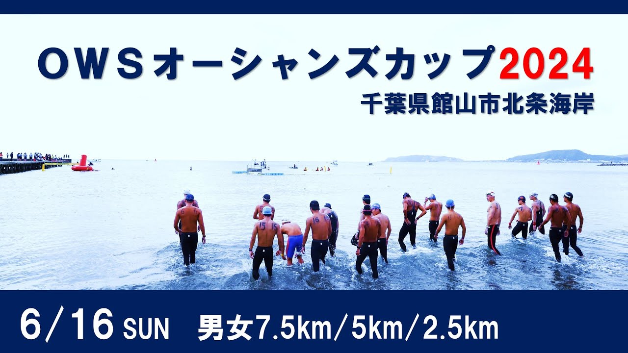 なんですけどもサンダルもえギリギリまで 入っておくことはえ可能ですけども袋が ないと誰のか分かりませんのでえ後々廃棄 することになってしまいますのでえ袋の中 に入れるようにお願いいたしますでペット ボトル等の水分に関しましてはえ置いて いただければ私たちが廃棄しますのでえ 置いといても大丈夫 です以上です はいじゃ最終ブリーフィングを始めますえ 2.5km5km7.5kmに参加される 方のえ最終グを始めますえスタートの時に はえ今までロープを後ろに持つということ が多かったかと思うんですがロープの後ろ に並んでくださいえ スタートの前にそのロープは巻かれますの でえこの時点でロープの前にいる方は ロープがなくなってもその場から動かない でいて くださいえVのあコースの説明でますとえ 正面に泳いでいく先にあるのが第1Vです え横に第2部位第3部位えここに戻ってき て第4Vとなります時計回りで常にVを 右肩にしてえ周回して ください2.5kmの方は2周回5kmの え方たちは4周回です7.5kmの方はえ 6周回です え今まではあ今までというか10kmなど では最終回の前にえ心霊を鳴らしていまし たがえ今回は種目の距離の違う方たちが 同時に及ぶのでえ心霊は鳴らしませんえご 自身で注意してくださいえ周回ごとに必ず ラップゲートを通ってくださいえ他の選手 のとのこう不要な接触はかあのやめて ください 特にスポーツマン戦士に反するとみなさ れる行為引っ張るとか乗っかるとか押すえ 投げるみたいなことが見られましたら1回 で赤赤旗になって1回で出発になり ますえフィニッシュの際はしっかりと立板 に手のひでタッチしてくださいえかすった えついたつもりであの空気をタしてしまっ たり え届かなかったりした場合は腕だけでも 戻してつし直して ください えフィニッシュ際のボール間際のえいか なる妨害行為は初めての失格でもえ イエローではなくてえそのまま即刻レッド になります失格になりますので気をつけて くださいご自身の泳ぐペースとスペースを 大事にえ楽しんで頑張って ください以上です 北城海岸は雲ありますが青空も見えてい ますこの後は2.5km5km7.5km スタートです国内2台タイトルの1つ オーシャンズカップ秋には日本選手権も 行われますこのオーシャンズカップを制 するのは果たしてどの選手でしょう か選手がこの後はいよいよコールされまし てそして浜に登場してくるということに なります先ほど男女10km午前中に行わ れた男女10kmは 男手見事に連覇を達成この後1か月後には パリオリンピック出場も内定しています そして女子は勝本市選手が連覇を達成し ましたその梶本選手は2.5kmにこれ から出場するということになり ます千葉県山にあります海岸 そして今日は教育のご挨拶も午前中に行わ れましたとにかくベストを尽くして くださいと館山市の石井教育長のコメント でし たさあこの後は7.55kmそして 2.5kmの勝負男子の7.5kmに出場 するま注目選手で言いますと今福選手の姿 も先見えていました 選手はSSの所属 です高校2年生そして高校年代その大会で 日本のトップに立った今福がこの後登場 男子は48人女子は42人で行われます 男子選手を紹介いたします7.5kmの部 ビブナンバー701番竹村久春日部共栄 高校702番亀山敬子府ジュニア703番 大畑郎花府704番 内村705番 学園校706番黒滝チーム青森707番 上岡太須学園高校708番今福平方SS 以上8名5kmの部501番勝谷日本大学 502番飯田達早稲田大学503石田 日本大学505番 506番杉本日本体育大学507番本太郎 福岡大学508番川富山SCC509番 伊藤優なーアクアティック510番白坂 大樹中京大学511番平野一日本大学 513 ターツ514北島 515番平京SC516 番太郎大学517番大塚日向相原市水 518番坂下巧相模原市水519番伊藤大 道金520番井上龍馬国士館大学521 加藤青山学院大学522 校523番中川大平SS524番中野太 日本大学525番三本春日部共栄高校 526番石山巧九州協立大学527番西田 也日本大学528番館下二SS529番 吉村正日本体育大学530番江沢陸 ルネサンス531番竹入日本大学532番 青木大龍天理高校533番堀川ヒダシュ3 条534番岸田和新潟医療福祉大学535 番伊藤レオ平方水駒536番天街ゆスイン 越ヶ谷537番 桜井智538番増田天大学539番福島照 が国士館大学以上37名2.5kmの部 VIナンバー2011番ひぐらし宮東京 濃厚大学202番寺田直戦国ジャパン 203番崎南海DC以上3名がし 続いて女子選手を紹介いたします 7.5kmの部ビブナンバー751番梶本 幸平方SS752番佐藤浦飛流高校753 番竹沢ロナ東京SC 754番久添高校755番荒本須学園高校 756番朝倉千葉商大付属高校以上6 名5kmの部ビブナンバー551番小原天 セントラル目黒552番 セントラル553 島浜SC554番 宮555番原田七向川女子大学556番 古川里保市立沼田高校557番小池遊園 タップ龍ヶ崎558番藤本安平方SS 559番菅東京SCC560番鈴木相模原 水教561番赤木林の日本女子体育大学 562番東北医薬大病院田代綾乃東北医薬 大病院563番金野裕子花政府564番 坂口理子向川女子大学565番松崎林 早稲田大学566番小笠原カノン青森日記 プランテック567番 568 徳沢569番斎藤夏横浜SC570番水谷 佐J