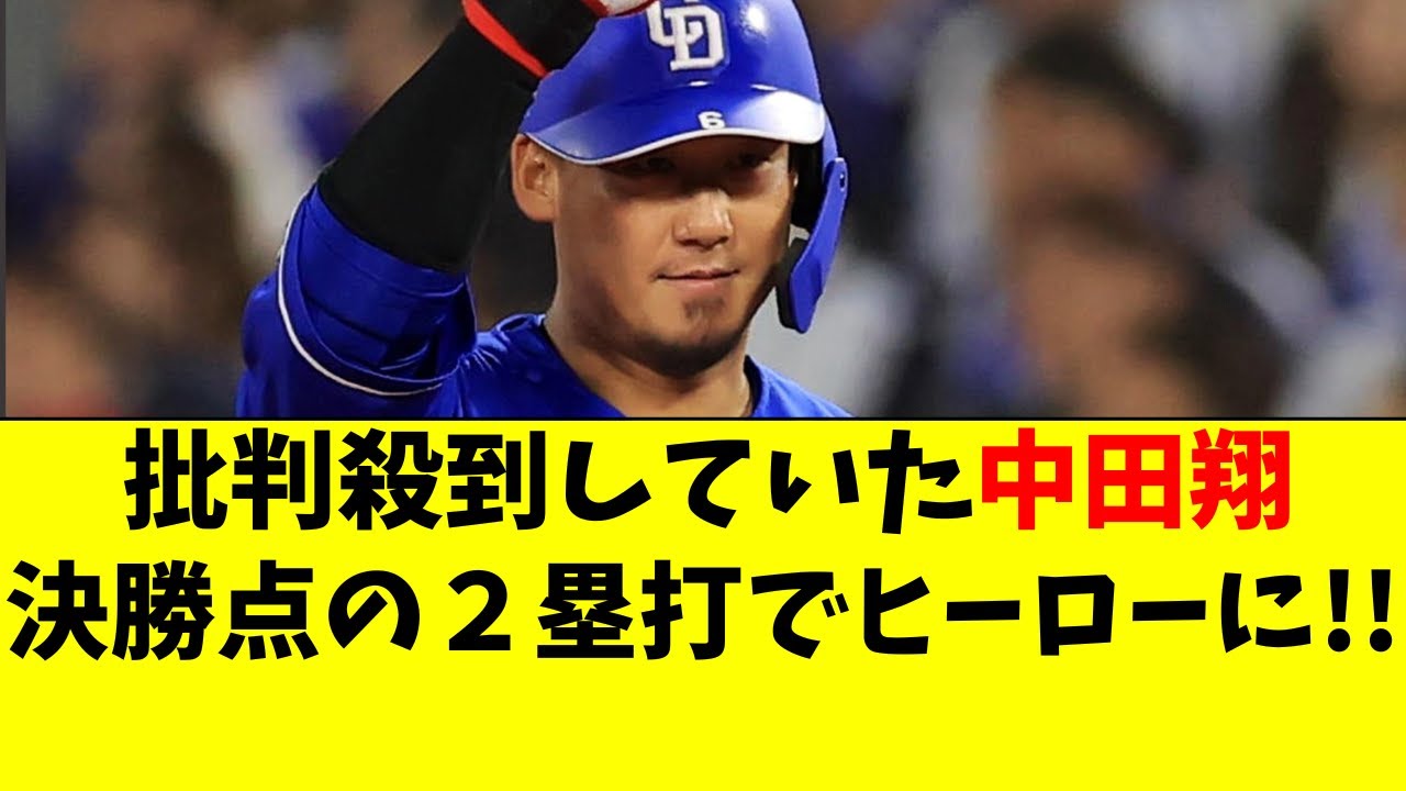中日ドラゴンズ、批判殺到中の中田翔、決勝点の2塁打でヒーローに!