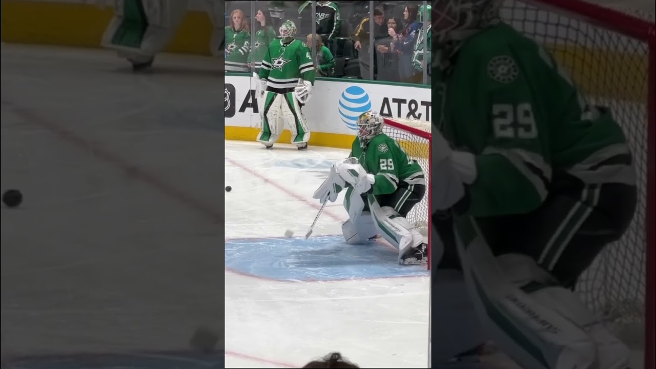 Jake Oettinger and Scott Wedgewood are both dialed in while making saves in warmups.