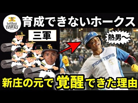 ソフトバンクの3軍にいた水谷シが日本 ハムで覚醒した理由新庄チルドレンの躍動 が止まりません救援ファン投票でトップを 独占するナイの役を見た新庄監督は嬉しい ですよでも前回の喜びじゃないエスコンだ からご修義みたいなもんと言いつつもこれ が例えば東京ドーム神宮広島とかのオール スターでファイターズの選手が今の選ばれ 方してたら俺はもう死んでいいと冗談を 交えながら喜びを当りました万波中世選手 や軍事ゆ選手が新庄チルドレンの代表格と して紹介されることが多くなりつつあり ますがその2人を押しのけてしまいそうな 活躍を見せているのがプロ入り6年目の 水谷俊選手です水谷選手はソフトバンク から現役ドラフトで日本ハムに移籍した 今シーズン長距離法としての才能を開花さ せつつあり万波選手もあいつのパワーから したら僕なんて小学生と表現するほどそこ で今回の動画では学生を見せつつある水谷 選手について言及しソフトバンクでは3軍 ぐらしながら日本ハムで才能を開花させた 理由についても紹介し ますこのチャンネルでは野球関連の動画を 発信していますのでチャンネル登録や コメントをいただけると嬉しい ですメジャーリーガーに育てます水谷選手 が見せた高い ポテンシャル新庄監督が6月2日自身の instrをた内容が話題を呼びました 同日のDNA戦でプロ初アーチを放った 水谷選手に言及し初ホームランおめでとう この子もスターにさせる1人ですこの子を 何年後かにメジャーに行かせる指導をして いきます皆さん応援よろしくですと綴り 驚きの声が寄せられています水谷選手に とって記念となった初アーチですが インパクトが非常に大きく新庄監督が メジャーとの言葉を使ったのも決して 大げさではありません1番レフトで スタメン出場し3回の打席で放った打球は 左中間へ飛び2塁打になりましたがスロー 再生を見るとこの打球はセンター左 フェンス最上部のラインを超えその奥の柵 にあたってグラウンドに跳ね返ったように 見えましたレフト側にいた日本ハムファン からはホームランホームランと必死な アピールが続きましたが判定は2塁打の まま試合は続行幻の初ホームランとなった ことで波野選手であれば息沈しそうですが 水谷選手は一味違います 4点リードの4回1アウト2塁で今度は大 新一選手のカーブをフルスイングすると ボールは文句なしに左中間スタンドに着弾 ナとハイタッチをかわすとソフトバンク 時代にお世話になった松田信浩に敬意を 表しあおと右拳を突き上げて叫びました 水谷選手はナイジェリア人の父と日本人の 母のハーフでミドルネームはジェシー岩道 水高校からドラフト5位でソフトバンクに 入団しの選手層が熱くプロ入り5年間で1 軍出場は叶いませんでしたがファームでは リチャード選手と並び長距離法として1目 置かれる存在でした水谷選手は身長 193cm体重999kmと日本人離れし た体格を持ち30m層に限れば日本ハ内で もトップクラスに入る身体能力の持ち主 です抜群の身体能力は大きなロマンを抱か せ一軍で打撃を指導するヤコーチも ものすごいパワーの持ち主これまではは うまくその力をボールに伝えることができ ていなかったんですが徐々にピントが会い 出していますこれでもまだ半分くらいの力 だと思いますがと驚きを見せています打球 団のスコアラーは壺にはまった時の打球は 軽くスタンドを超えるホームラン アーティストとしての素材は万波中世に 引けを取らない確実性を高めれば面白い 選手ですと評価しており現在密着マークを かけていると付け加えました水谷選手は 昨年の現役ドラフトで日本ハムに移籍した ことが野球人生の大きな天気になってい ます昨年のウエスタンで事故最た83試合 出場を果たしたものの打率2割ゴブ9厘4 本塁打35打点と決して派手な数字を残せ たわけでもなくシーズン序盤はなかなか 調子が上がらず3軍に落ちた時期もあり ましたソフトバンクの外野んは柳田佑紀 選手近藤賢介選手シト右京選手柳町タ選手 に加えて巨人からトレードでアダム ウォーカー選手が加入しかも今シーズンは 川村優人選手も対当しているためそのまま 残っても水谷選手の序列はかなり後回しに なっていたはずですプロ6年目を新天地で 迎えた水谷選手は4月9日に1軍昇格11 日のソフトバンク戦で佐の大関智久選手 から3回にレフト前タイムリンヒットを 放ちプロ初安打初打点をマークしましたが この時は2週間たらずでファームに攻殻し ていますここでもう一度自分の打撃を 見直せたことが交流戦での爆発につがった ようで一軍選手のスピードとか切れを見て 自分に足りないものをもう1度再認識でき ましたあとは甘い球は一打席に1回しか来 ないと自分に言い聞かせて2軍で試合に出 ていましたと水谷選手は解雇しました2軍 でさらにパワーアップを遂げた水谷選手は 5月11日に最昇格すると強烈な輝きを 放ちます1番レフトでスタメンに抜擢され た29日の阪神戦でプロ入れ初のモダ賞を 記録ソフトバンク時代にチ
