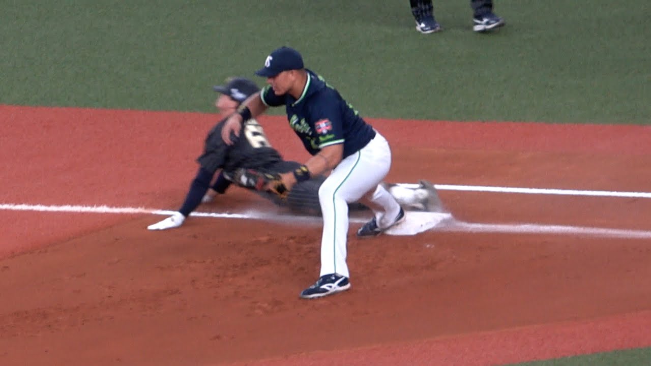 1軍昇格即スタメンの茶野篤政、ガッツ溢れるヘッドスライディングで出塁!