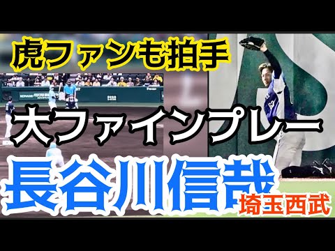 【虎ファンも拍手】 #阪神 #前川右京 選手の大飛球を #長谷川信哉 選手がジャンピングキャッチ! 24.6.9.🆚#埼玉西武ライオンズ 🏟#阪神甲子園球場