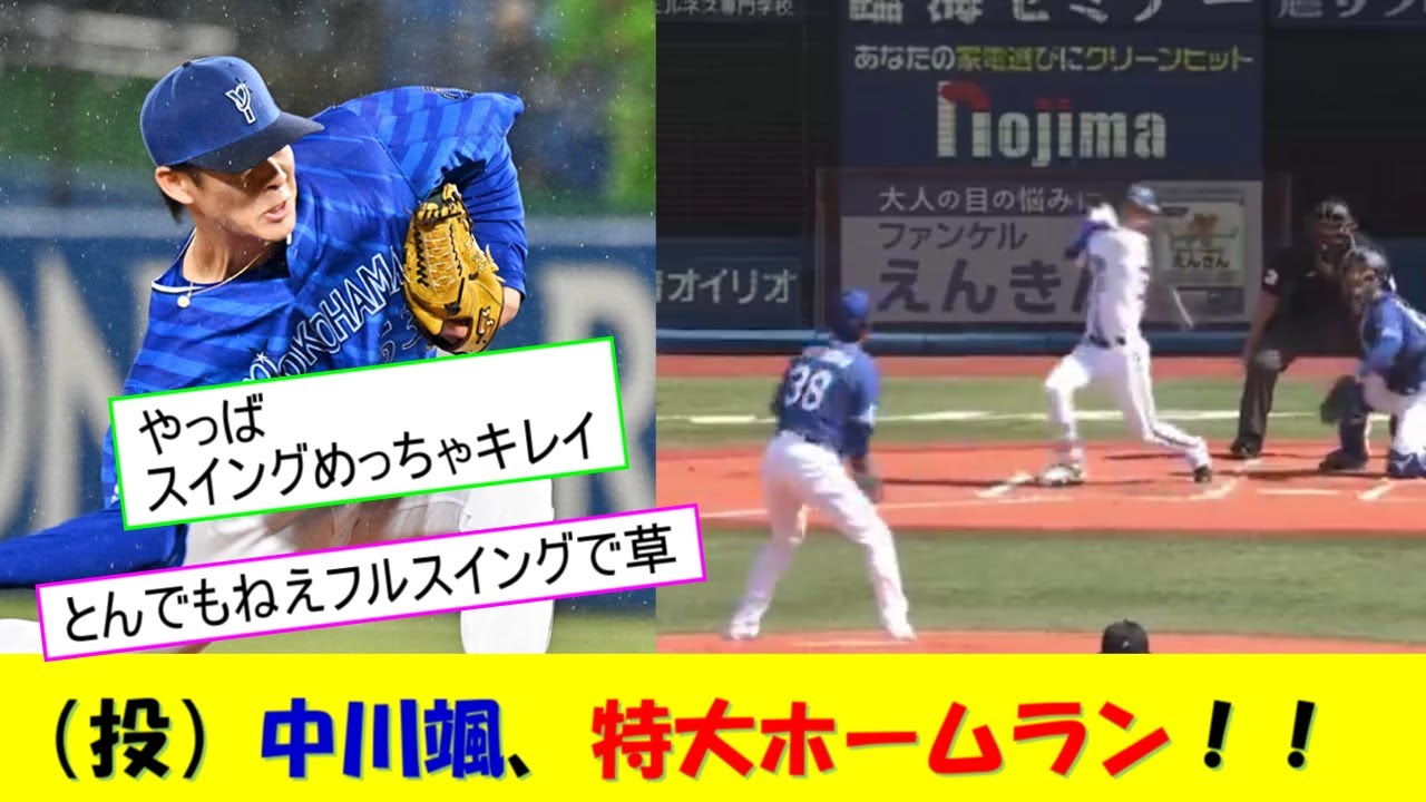 投手・中川颯、スラッガーのような特大ホームランを打ってしまうwwww