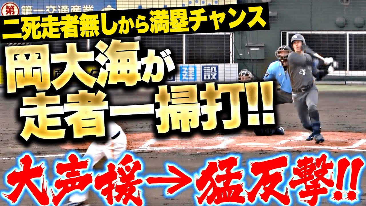 【猛反撃】二死走者無しから『満塁チャンスを作り…岡大海が走者一掃タイムリー2塁打!』【1点差に詰め寄る】