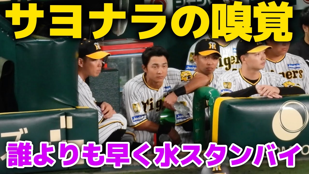 【水ぶっかけ準備万端】サトテルの死球でサヨナラの匂いを嗅ぎつけた熊谷パイセン、誰よりも早くぶっかけ用の水を取り出しスタンバイ 2024.6.21