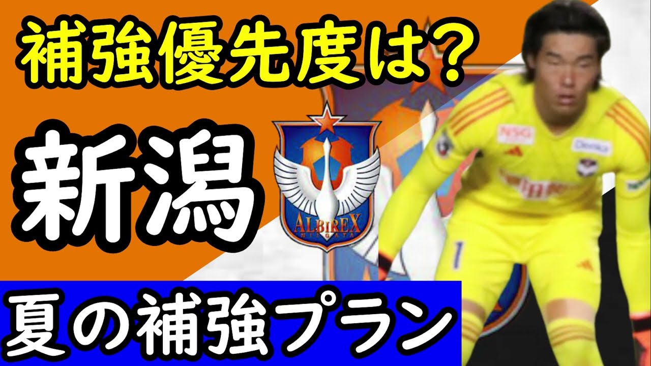 はいのパラプンテjリーグサッカー チャンネルですえいうことで今回新潟夏の 補強考察というとこでございましてさえ 新潟まもう少しでねまJ1も前半戦が 終わるという中で夏の遺跡市場が開こうか とえしておりますさあ今回新潟編ですね さあどうなるかまあ徐々にこう調子ね上げ てきてるイメージがある新潟ですね前々回 はえに勝利そしてえ前回ね校長鹿島をえ 鹿島と泥とえいうとこなんで上位1位と2 位との対戦で負けなかったいやちょっと 上り調子になってる感じがする アルビレックス新潟さでございますけも さあえそんな新潟の補強を考えていき ましょうかねまずこちらってことでえ補強 優先度からまず見ていきましょうという とこで左出しているのが今シーズンの主な メンバー多分全員名前はないと思われます で赤いマークの選手ですねはえレンタル 放出中にはなってきますんでまあ多分ね僕 が見落としてるだけで何名かいるかもしれ ませんま主要なメンバーとえいうとこと あとは一応最近2トップですね最近2 トップシステムを新潟さんはやってますが 一応えっと今シーズン回数が多いシステム まスタート値で1番多いシステムがまだ 451が1番多いという状況だったんでま 最近2トップやってることはねまえ理解し た上で一応4511番多いねシステムで やっておりますんでま実際は田木選手と 長谷川選手は最近負傷中なのでま2トップ システムを採用中というとこなでまそこは ね前提の表になりますんでちょっとねえ 違和感あるかもしれませんけどもねでま見 てくとゴールキーパーま低いま小島選手が いますしでまそもそもね控に安倍選手多分 タブで行けばね十分ねえ正ゴールキーパー をやれるんじゃないかっちゅね安倍選手も いてでレンタルでジェフ千葉の方に藤田 選手も行ってますんでまあ補強の必要は ないだろうしでそもそもね夏にえタブから ゴールキーパーを引っ張ってくるのは相当 難しいというのがありますんでま小島選手 もいますしねまあ低いでいいんじゃなかろ かというとこでしょうでディフェンダーは 中度ですかねまシーズン途中にねま びっくりしましたけども新井選手の遺跡が 発表とえなりましたで左サイドバックに 関してはま本職はセンターバックの早川 選手ですね福岡戦でゴールありましたけど も早川手が一番左のサイドバックをえ先発 回数で言うと務めることが多いで次に本職 の堀米選手がいてでまボランチが本職の星 選手もサイドバックをやってるという状況 なんでちょっとね左サイドバックの本職が 欲しいかなちゅうところでしょうかねま右 に関しては藤原選手がいてで若手のえ スピードのあるね森選手もいてみたいな ところなんでま右よりもね左の方が優先度 は高いかなっちゅうところでしょうかねま まセンターバックもねベテラン千葉選手が いて若手というかねえレンタルバックで 帰ってきた遠藤選手もいますしま早川選手 もできますのでセンターバックよりもま左 サイドバックの本職1枚ね取ってこれたら いいのかなっちゅう意味でま中程度にはし ておりますしまやっぱり新潟のセンター バックは足元が求められますんでいきなり こうねシーズン途中にセンターバックを 取ってねビードアップを仕込むちゅうのは なかなか難しいっていうところでま センターバック僕はねこの2枚で全然いい んじゃないかちゅう感じがしますんでま ディフェンダーの中っていうのはサイド バックのところというとこでしょうかねで 中盤まミッドフィルダーは低いでしょうま 宮本選手秋山選手が先発回数としては多い ですけどもただねま先発回数的にはこ別に ね大きな差があるわけでもなくてでま島田 選手もいてで若手奥村選手もいます奥村 選手この間2トップの一角でね出番がね あったんでま今後ねどこで使われていくか というとですしまトップ下また451に 戻すとしても田木選手と長谷川元木選手が いますんでまトップ下を置くシステムに 変えても別にこうねうんそんなえ緊急度が 高いようには思えないんですよねだからま 中程度ウィングはコミ選手いて帰ってくれ ば長谷川元がいてで最近は谷口選手が左の ウイングをやってますまロアス時代は彼も ね左のウイングとして得点ランキング上位 につけていたえ谷口選手にはなってきます んでま元々ウイングま高さがあってね強さ があるウイング谷口選手まもちろんね センターフォワードもできますしまなん なら先発回数で言うとセンターフォワード の1番多いのは谷口選手にはなってきます んでま僕は別に2列目に関してはそんなね 緊急性はないのかなって思いますま右が ちょっと定まってないかなっていうのはね ありますがま左に関してはコミ選手いて 長谷川元帰ってくればねこの2枚プラス 谷口選手で太田選手いますんでまうん そんな高いように感じませんねで右側だ からね松田選手コミ選手まいろんな選手が 使われてまいろんな選手が使われ るってことはあまりこうしっくり来てい ないのかなっていうま松